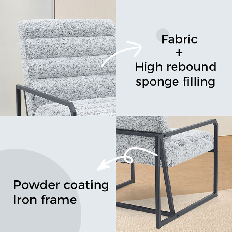 Produktintroduksjon: Høykvalitets stabil metalljernramme Ergonomi Liggende enkel stoffarm lat sofastol for soverom i stuen (GY-648), et godt tillegg til ethvert moderne oppholdsrom eller soverom. Denne stolen er konstruert med en solid metallramme og stoff av høy kvalitet, som gir både holdbarhet og komfort.