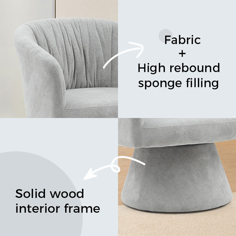 Produktintroduksjon: Nordisk stil tresirkulær base Midt ryggstøtte Accent Leisure Stol Lenestol Enkelt sofa Stol For Stue Balkong Spisestue (GY-647), et godt tillegg til ethvert moderne oppholdsrom. Denne stolen er konstruert med en solid ramme av jern og kryssfiner og trukket i et stoff av høy kvalitet, som gir både holdbarhet og komfort.